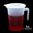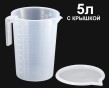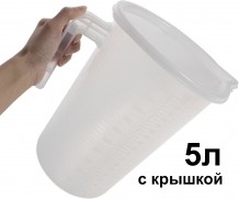 Большой мерный стакан с крышкой объемом 5 литров изготовлен из пищевого полипропилена и предназначен для измерения объема жидкостей, а также для хранения пищевых и непищевых продуктов.