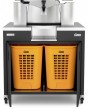 Широкий подиум Wide Black с двумя емкостями, способными вместить кожуру после переработки примерно 500 плодов (70 кг.) Общий объем контейнеров 100 л. или 40 кг. апельсиновой кожуры. Капельный поддон имеет прямой слив непосредственно в емкость для сбора кожуры. Материал корпуса подиума - гальванизированная сталь с порошковой окраской; части контактирующие с соком - нержавеющая сталь.