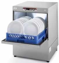 Профессиональная посудомоечная машина для мойки тарелок, чашек, блюдец, ножей, вилок, ложек и других предметов высотой не более 280 мм. Душ снизу и сверху. ТЭН бака 1500 Вт. Кассета 400x400 мм. Особенности модели: