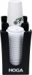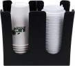 Черный 2-х секционный линейный настольный органайзер для одноразовых стаканов и крышек изготовлен из ударопрочного пластика методом литья под давлением. Предназначен для стаканов любого объема, вплоть до 750 мл. Вмещает порядка 66 бумажных стаканов для кофе, объемом 250 мл. Литая конструкция фундаментально надежна т.к. изготовлена единой и цельной в отличие от хрупких, склеенных из частей, органайзеров из акрила или фанеры.