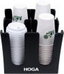 Черный 4-х секционный квадратный настольный органайзер для одноразовых стаканов и крышек изготовлен из ударопрочного пластика методом литья под давлением. Предназначен для стаканов любого объема, вплоть до 900 мл. Вмещает порядка 132 бумажных стаканов для кофе, объемом 250 мл. Литая конструкция фундаментально надежна т.к. изготовлена единой и цельной в отличие от хрупких, склеенных из частей, органайзеров из акрила или фанеры.