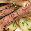 Рибай стейк sous vide с беконом, картофелем и бальзамическим уксусом Вам понадобится: Для картофеля 1/4 чашки (60 мл) топленого свиного жира 4 веточки тимьяна кошерная соль, сколько нужно для посолки 3/4 фунта (340 г) пальчикового картофеля,... |